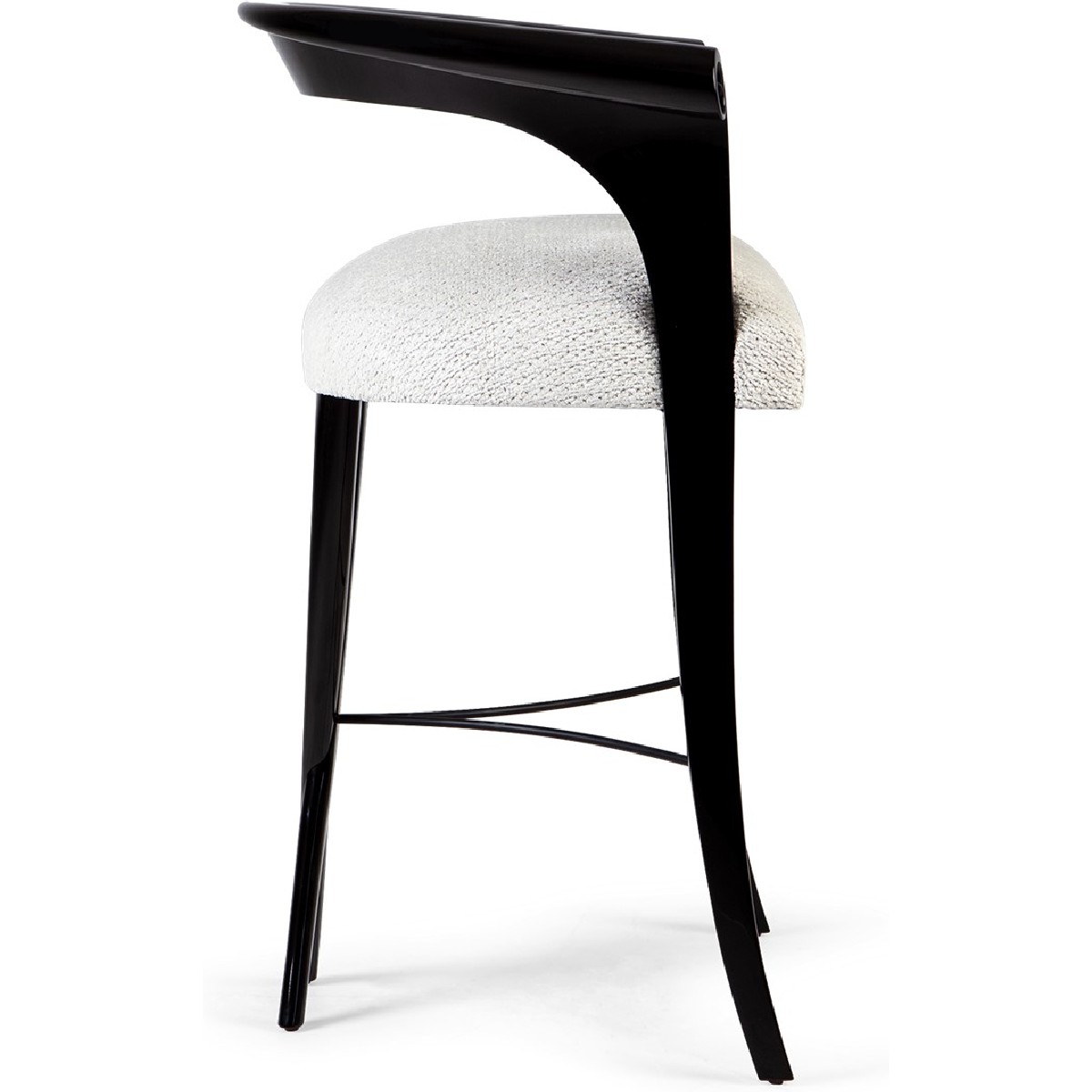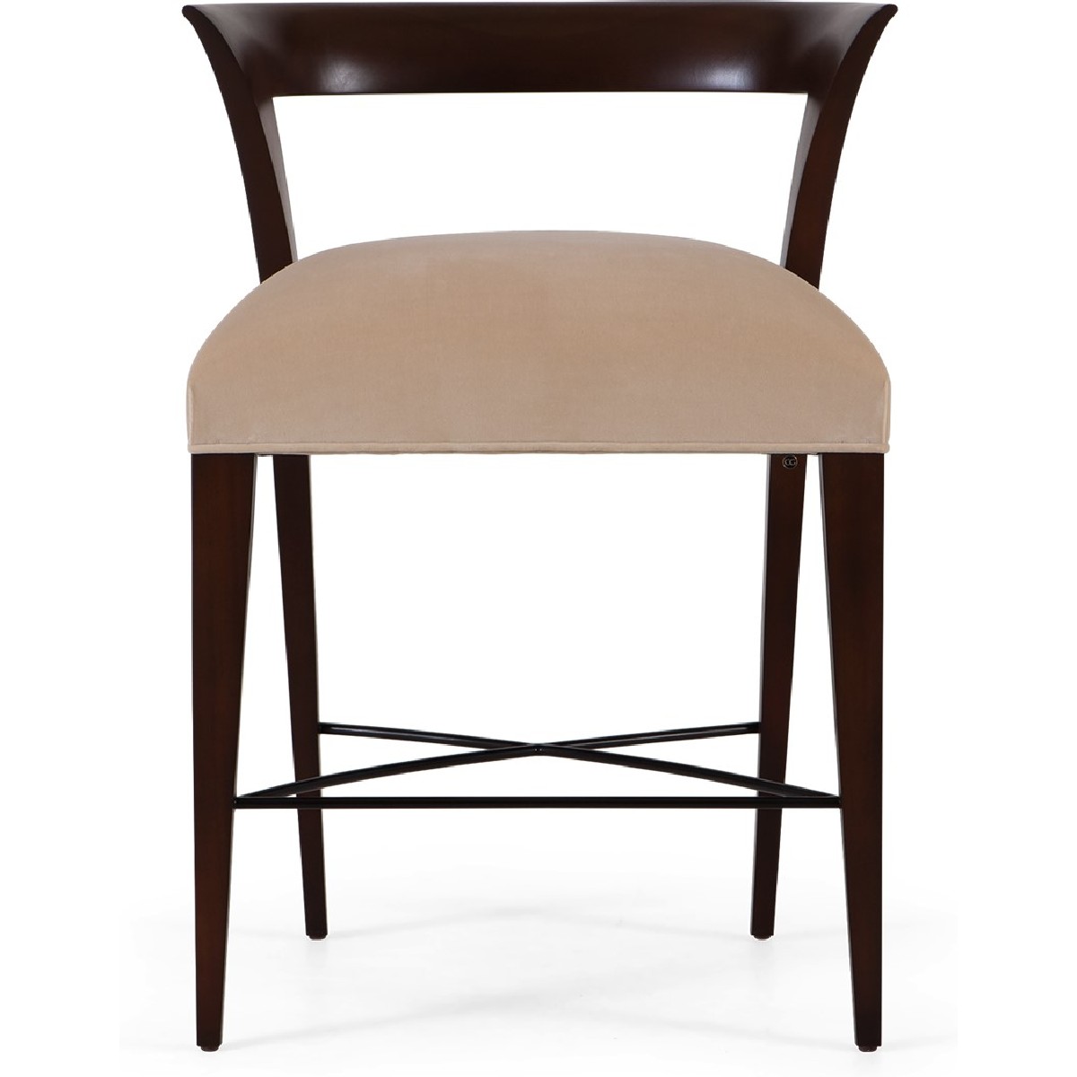 The minimalist lines of this signature 'Chris-Cross' stool, with its handsome rolled back arms distinguish this bistro stool to be perfect for any number of timeless settings.