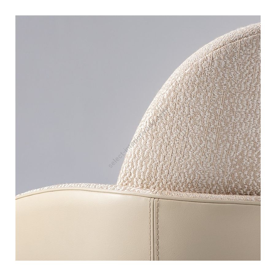 The double skin that wraps its backrest highlights its curved and delicate shape. Its external part can be combined with fabric or leather to highlight the shape and its curves.