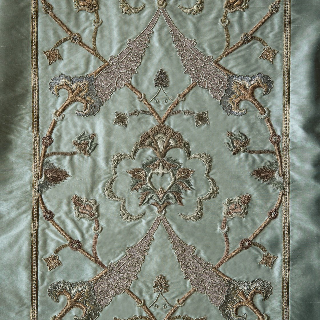 Darius is an elaborately detailed embroidery inspired by the tapestries of the Ottoman Empire. The design works as a leading edge on curtains, or on the back of dining chairs and scatter cushions.