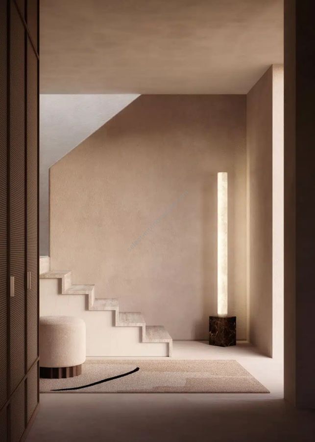 The lightning bolt, the light emanating from the god Zeus, which takes shape from the cut that interrupts the linearity of the alabaster cylinder, inspired this series of Italian Alabaster.