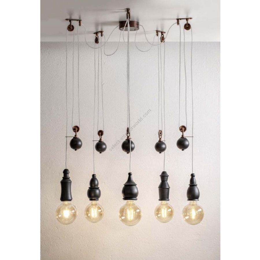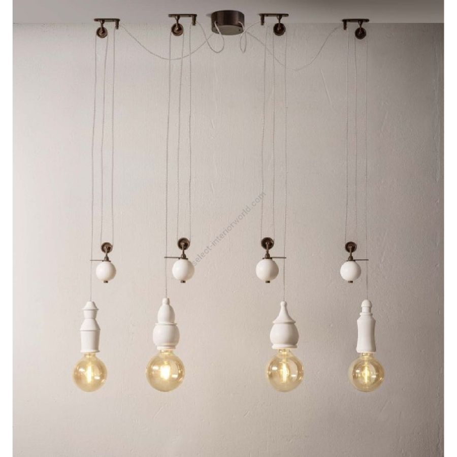 Aldo Bernardi's latest collection features counterweight light fixtures that are height adjustable, available in antique brass or ceramic finishes. These pendant lights are equipped with a pulley in antique brass and come with a 3-meter-long transparent PVC cable.