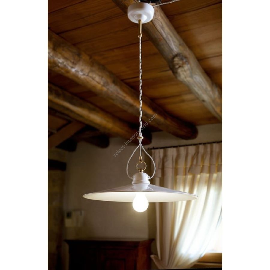 Series of pendants, pendants with counterweight and sconces made of white glazed, coloured line or decorated ceramic hand-made.