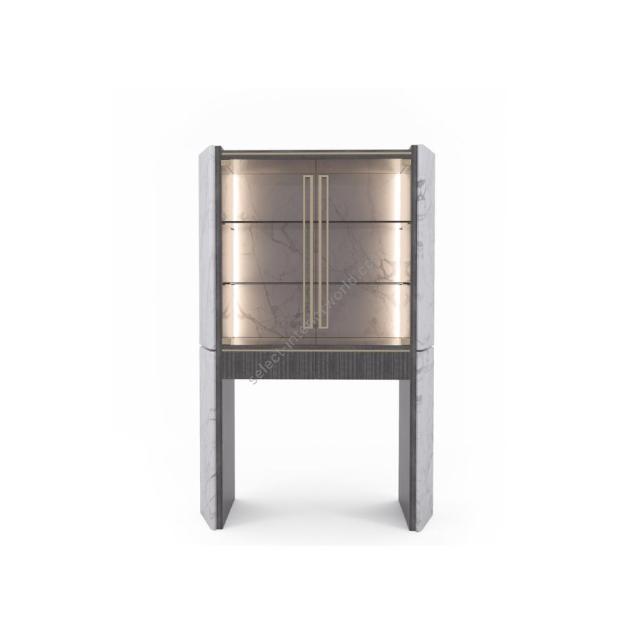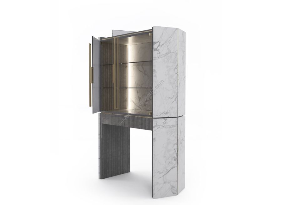 The Algerone Bar Cabinet is a sleek and opulent design solution with architectural features. Its main component is Statuario marble, hence its strong and durable character. Algerone also highlights an interior handcrafted in smoked glass, polished brass, and glossy Eucalyptus Frisé Veneer. Ideal for an open-concept space or a contemporary living room, the Algerone Bar Cabinet is set to create a stunning visual effect.