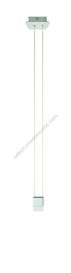 The LED BOX collection has two models: the single pendant and the four-light pendant with a linear canopy. The structures are made of mirror polished stainless steel. The metal part of the shade is made of cast aluminum, also in a mirror polished finish, and each shade is a quadrangular prism of sandblasted solid glass. The light source is a non-dimmable Citizen 3W 250lm 2700K integrated LED. In both models the driver is included, housed inside the canopy.