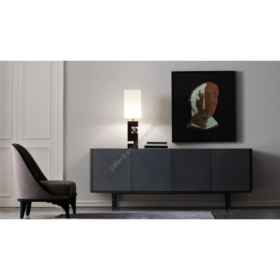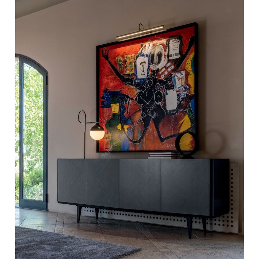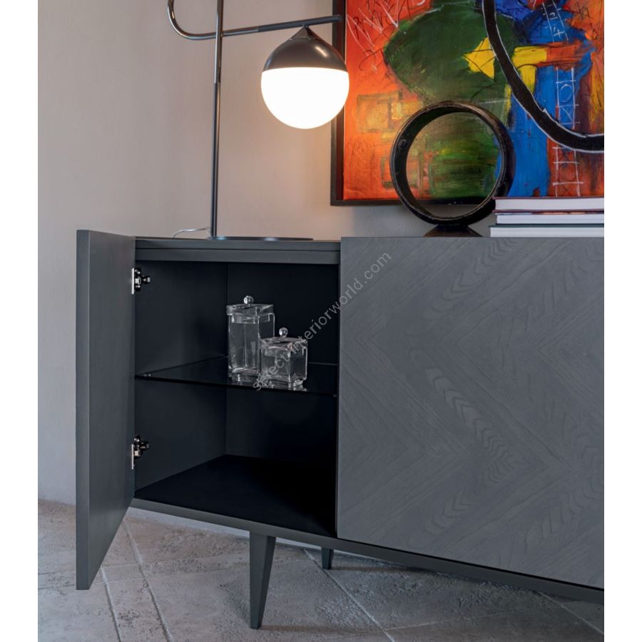A refined and elegant sideboard, which is expressed through the precious play of inlays of ash leaves that characterize the doors. Graceful but effective chromatic and material contrasts, which distinguish the entire collection and enhance the dynamism of the forms.