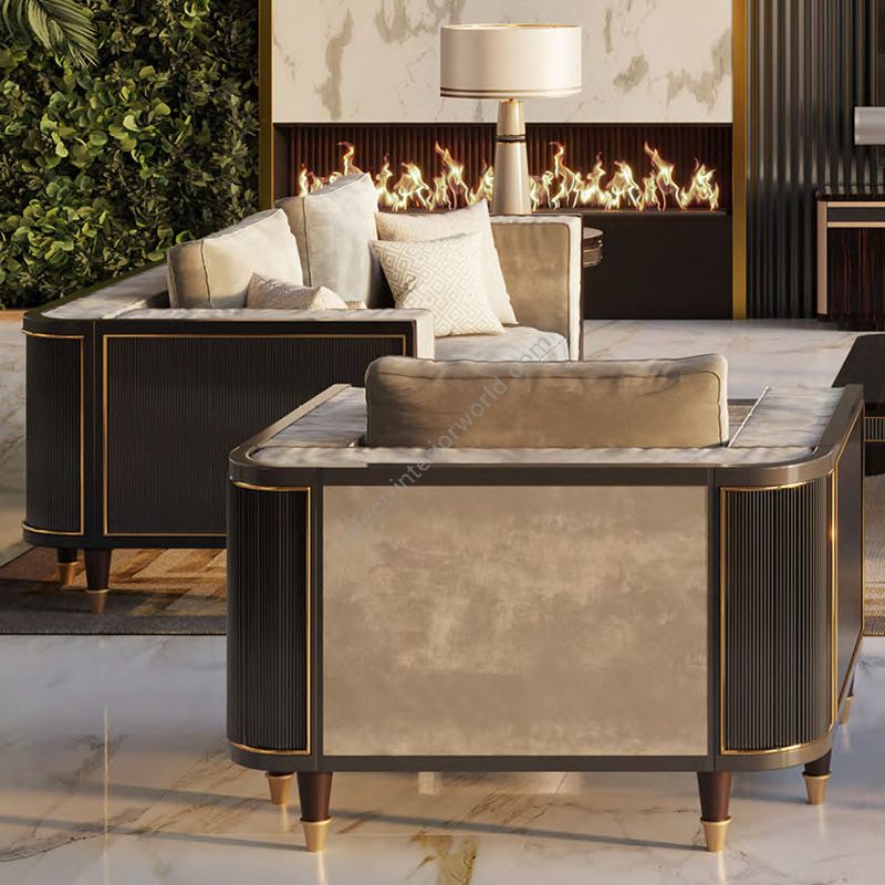 Armchair from the Monaco collection Net weight: 40,00 Kg / 88,11 Ib Finish: High Gloss Makassar wood (MAK.B) / High Gloss Black wood (NB) / Gold Leaf wood (PO) / Polished Brass metal (DB)
