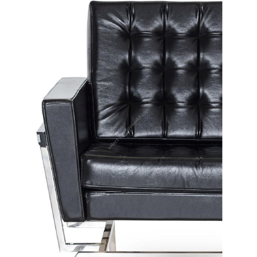 Black Leather Armchair. Structure in shiny stainless steel with inserts in extra-clear mirror and handmade shiny bevelings.