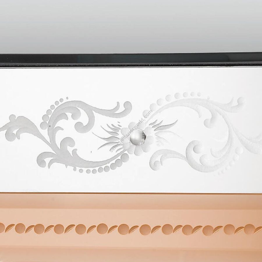 Borders made of bevelled glass with pink mirrored finish and decorated with engravings.