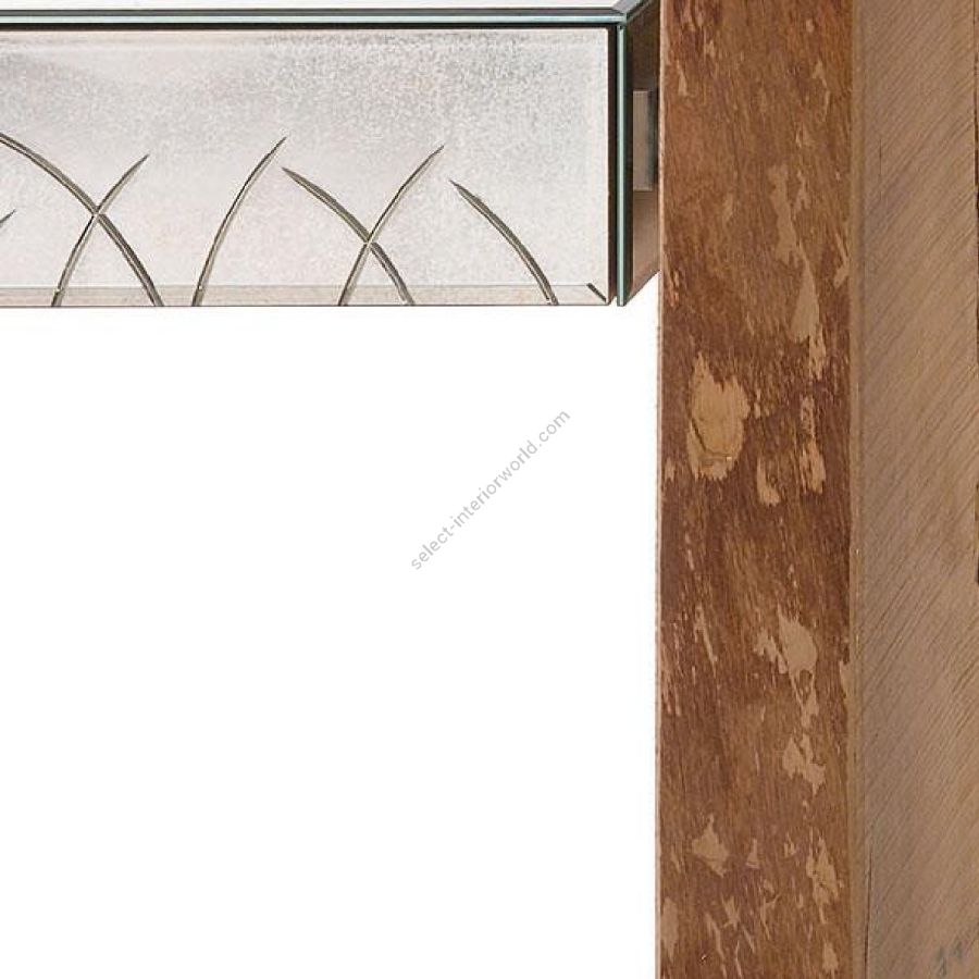 Console with two drawers in antiqued mirror and shiny handmade engravings.