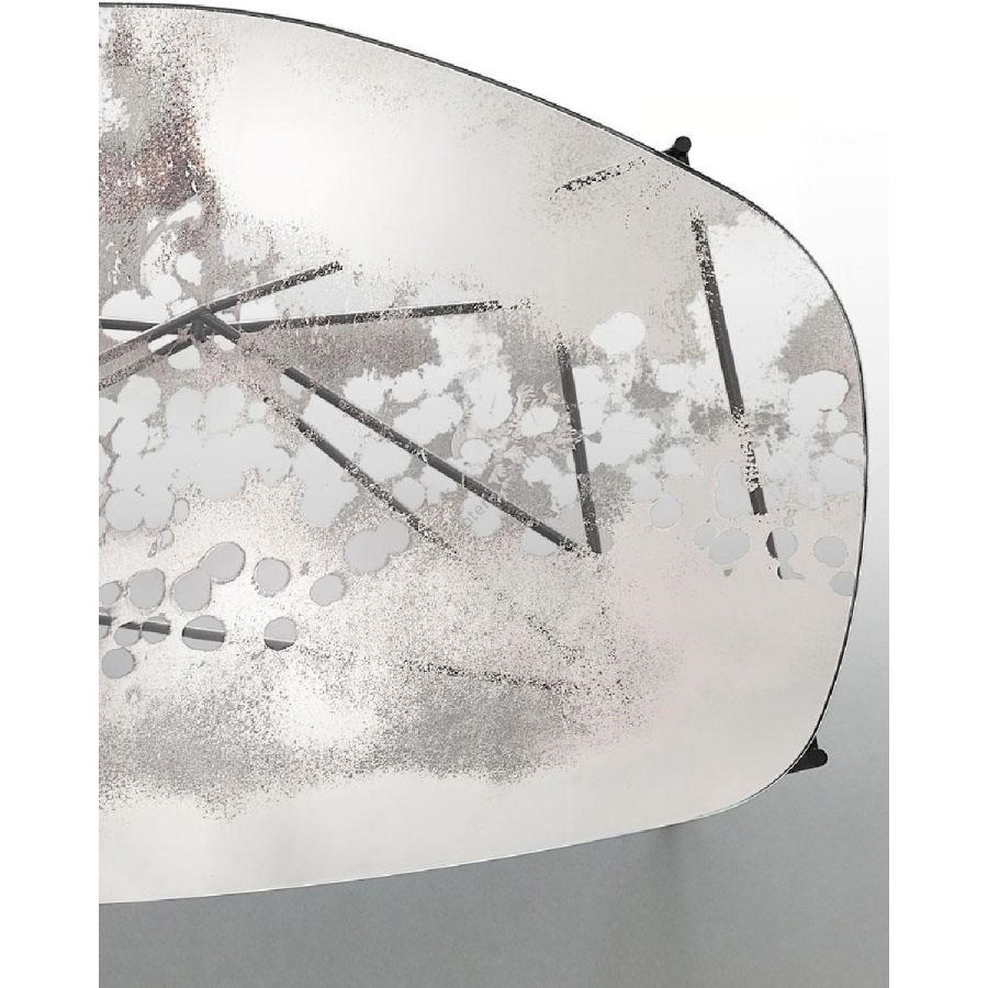 This results in a uniquely different, corrosion of the mirrored surface every time. Timing is the key factor in this handmade process.