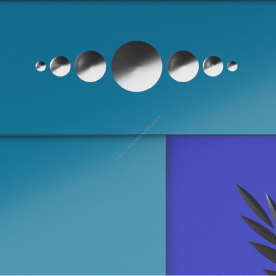 Multi-coloured extra-clear and lacquered glass coating 6 mm thick with silver etching.