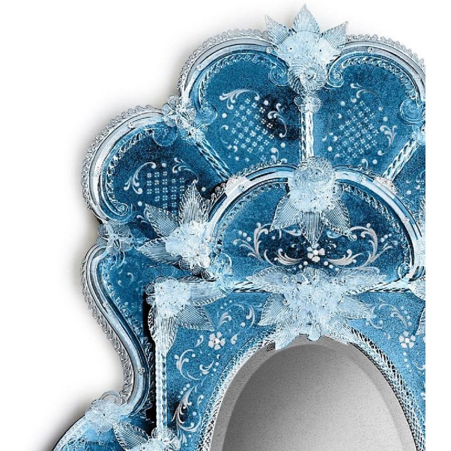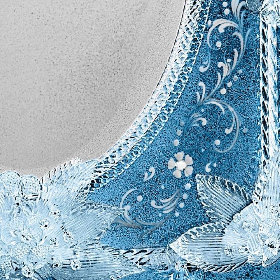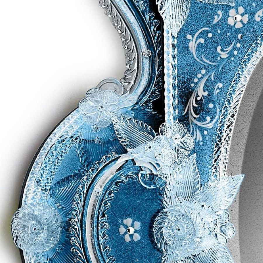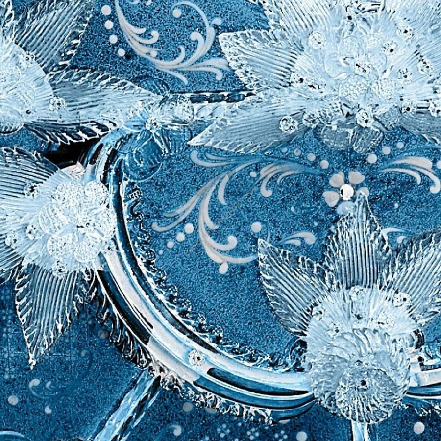 Decorative leaves, curls and rosettes made of crystal-blue colored Murano glass. Twisted ropes made of crystal coloured Murano Glass.