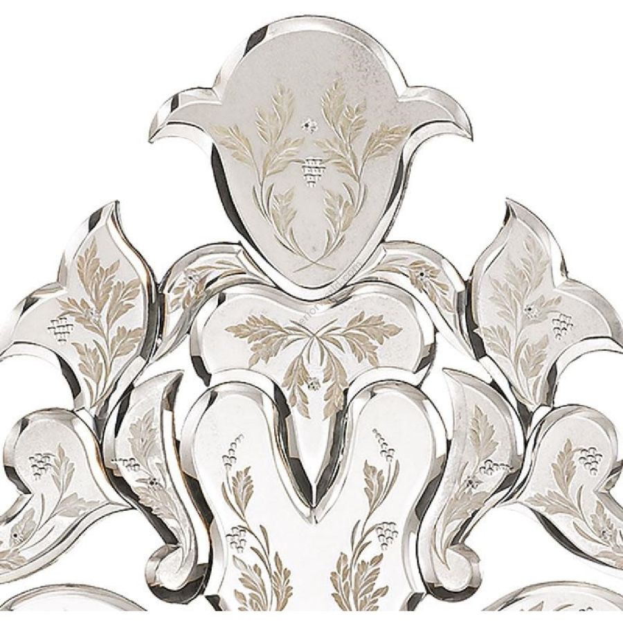Frames and crest made of bevelled and engraved glass with light antique mirrored finish.