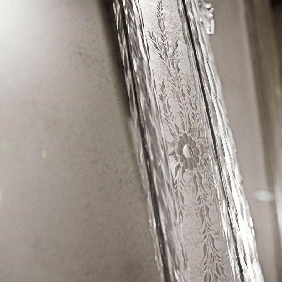 The most famous characters are the typical engraved curl finishings together with the depiction of Bacco, Justice or the well-know Venetian Eighteenth-century. Crystal colored Murano decorative flowers, leaves, twisted ropes and multicoloured glass paste rosettes embellish each Venetian mirror. The result is a unique item comparable to a work of art for craftsmanship and excellence in its execution.