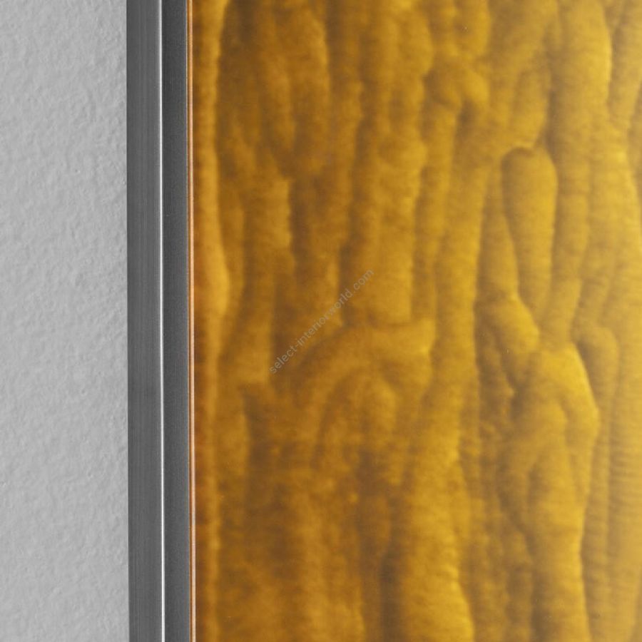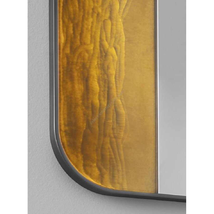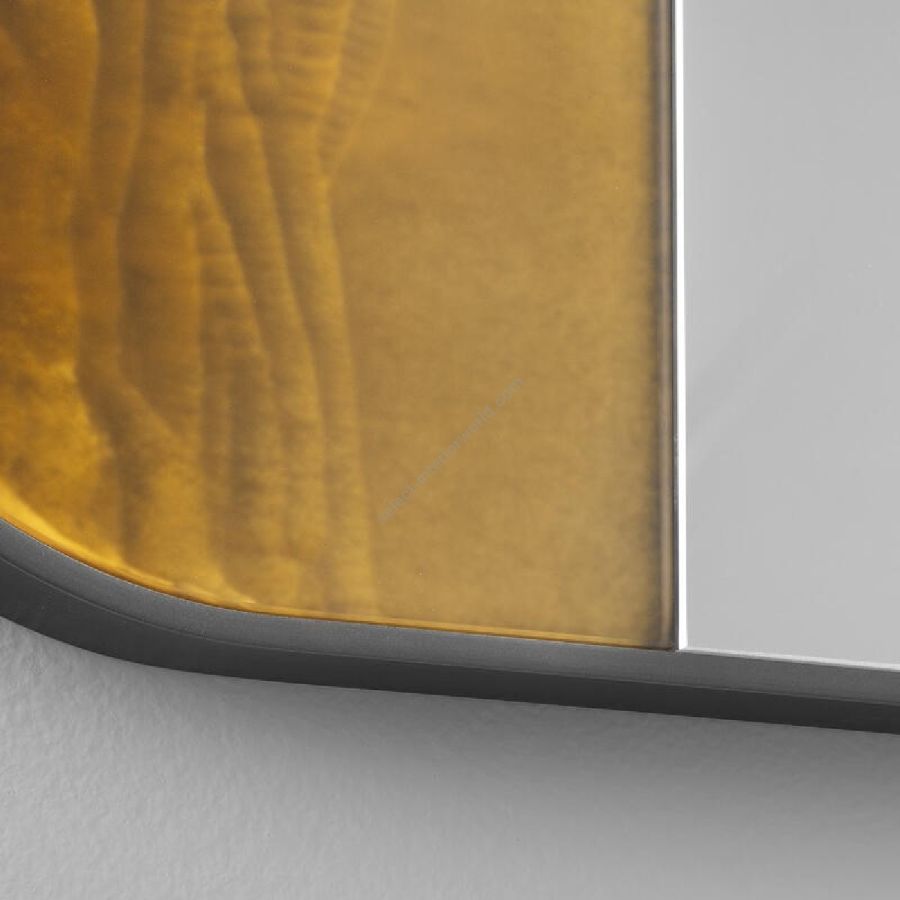 Mirror front with edge in Gargano finishing on etched glass. Perimeter edge in burnished brass.