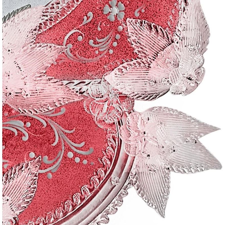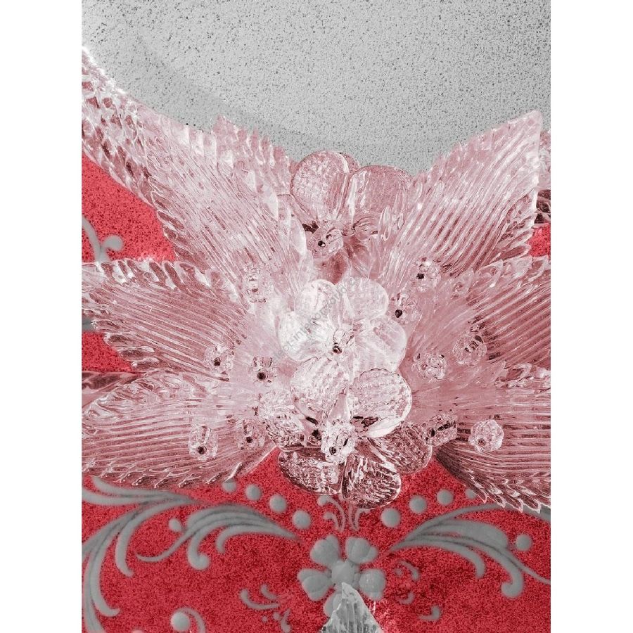 Decorative leaves, curls and rosettes made of crystal-red colored Murano glass.