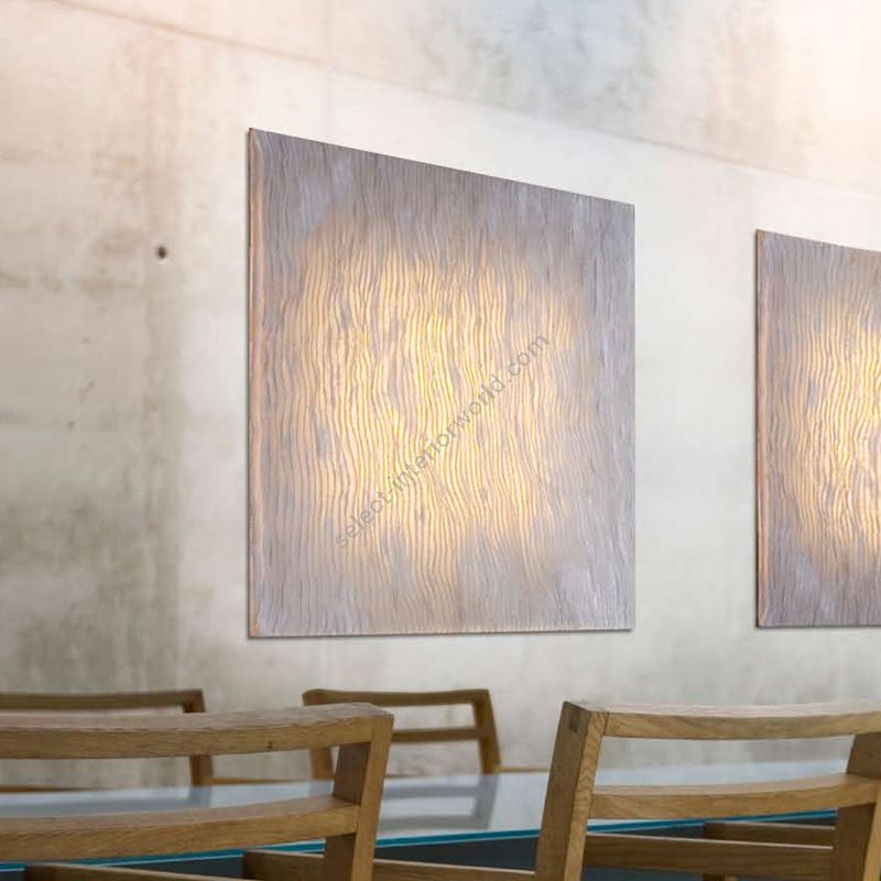Lighting solutions that may be used to cover large surfaces of a warm and pleasant light. Delicate flat forms made of SIMETECH®, with subtle reliefs where light expands evenly, creating authentic bright skies in architectural environments.
