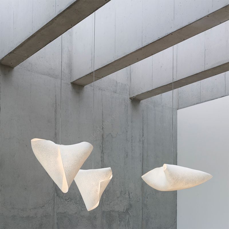 Ballet is a collection created from the experimentation with SIMETECH®. Its shapes are formed by the superposition or gathering of its vertexes, allowing freedom for the own flexibility of the material. The resulting volumes are fluid and natural due to the tension of the SIMETECH®. Its asymmetry makes its forms change depending on the point of view. Plié, Elancé, Relevé…a constant dance of light and shadows.