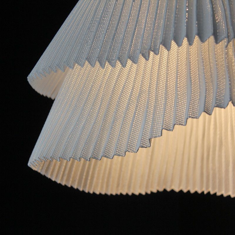 Tempo is a pendant lamp collection made with painted stainless steel mesh. This material, crafted in fine pleats, forms two overlapped layers that create two different lamps full of dynamism. Andante and Vivace, two liveliness shapes born from one. The representation of two instants generated by the same movement at a different tempo.
