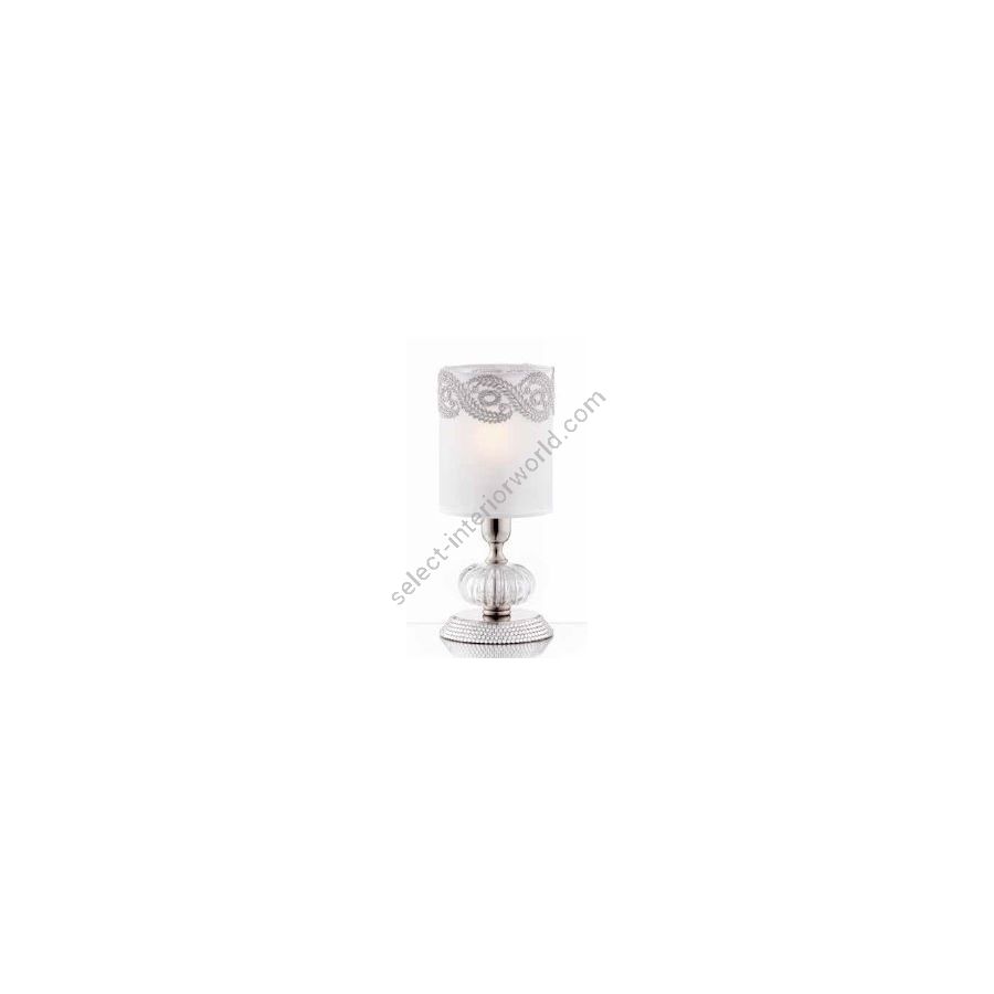 NINFEA Collection Table Lamp in Murano glass with brass elements inlaid with Swarovski® strass crystals. Included lampshade in white organza with fabric trimming. Lighting item that diffuses the light with great effect in the surrounding environement creating a warm and welcoming atmosphere.