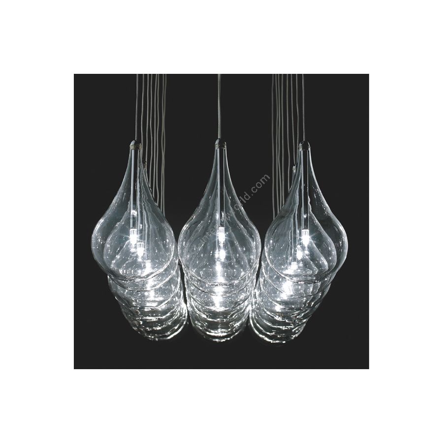 The structure of all DROP LED pendants is made of chromed iron and the lampshades are made of transparent drop-shaped borosilicate blown glass. All include the driver, and the 1.1W 95lm 2700K CRI>80 G4 LED bulbs (not dimmable) are always included.