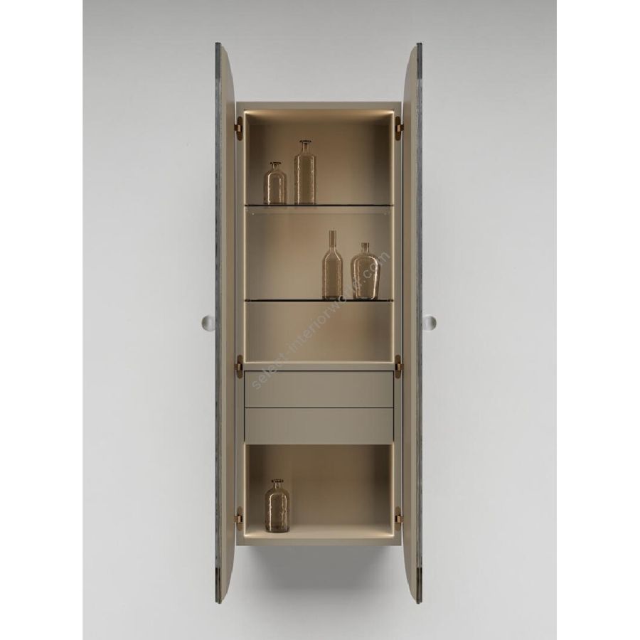 Lacquered wooden frame with sand-stained finish. Satin-finish glass knobs. LED interior lighting.