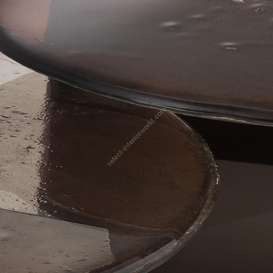 Top in baked glass in two layers with irregular edges, painted degradé from bronze to transparent, with partial silvering on the back.