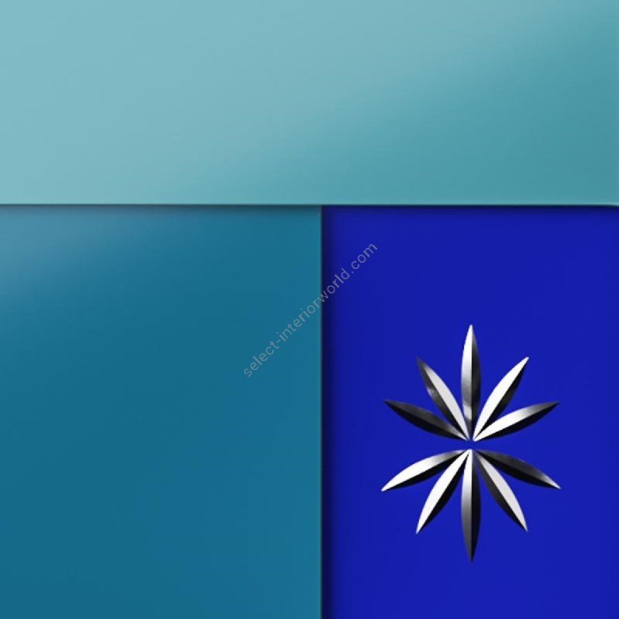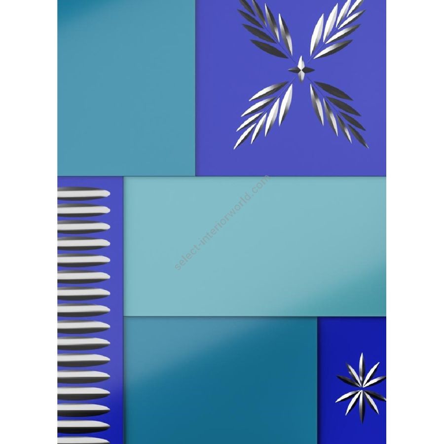 Multi-coloured extra-clear and lacquered glass coating 6 mm thick with silver etching.