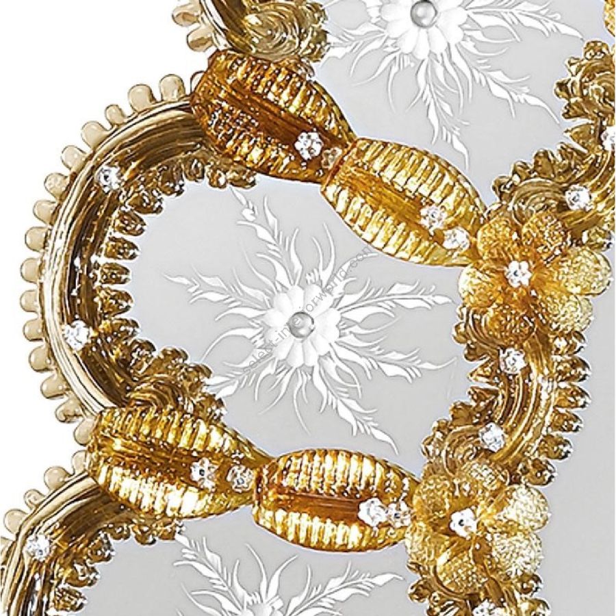 Last but not least: do not worry if the mirror's decorations seem badly fixed. Our master artisans preserve the historical tradition in avoiding fixing the glass parts. In fact leaving those parts mobile and tying them with an iron wire is the correct procedure both to respect Venetian roots and above all, to avoid damage and breakage of the glass.