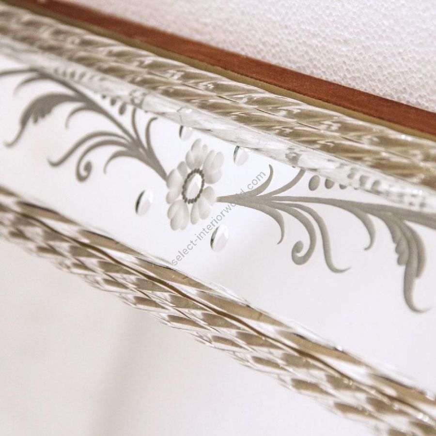 Last but not least: do not worry if the mirror's decorations seem badly fixed. Our master artisans preserve the historical tradition in avoiding fixing the glass parts. In fact leaving those parts mobile and tying them with an iron wire is the correct procedure both to respect Venetian roots and above all, to avoid damage and breakage of the glass.