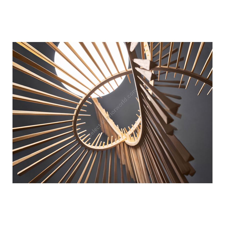 Aimei is the most sculptural pendant lamp by Arturo Álvarez. Inspired by the spine of the atavistic and ancestral universe, it breathes from its ribs, opening, closing, beating strongly. In its protected interior, the heart of the universe peeks out, where the primordial light and life are hidden.