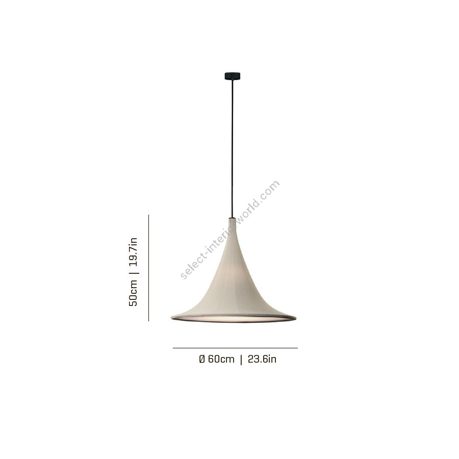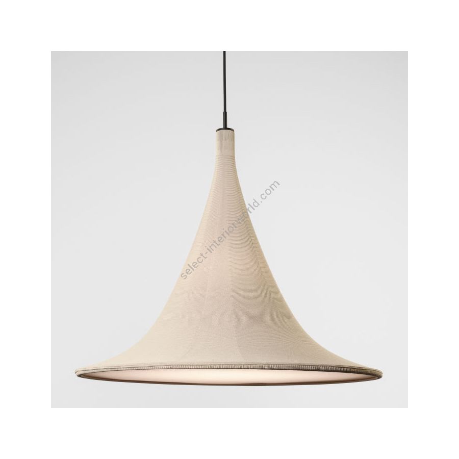 The Cabana lamp aims to offer a sense of seclusion and shelter similar to the Galician cabins, or cabanas, that were used to protect raw materials or as a shelter against inclement weather. The lampshade is made using the 3D knitting method, a technique commonly used in the textile industry but seldom applied to lighting. This makes it possible to create seamless lampshades in three dimensions without producing excess fabric. The aluminum canopy, the fabric and gravity do the rest. The parchment diffuser provides the weight needed for the lamp to take its shape. It also filters the light to produce very comfortable, homogenous illumination, much like the shelter of the cabanas. This is very easy to mount and simple to disassemble when replacing the lightbulb. In addition to being made from recycled and recyclable materials, the lamp can be sent in a small package and stretched out to its final shape and volume, reducing its carbon footprint. It comes in a range of three colors: electric blue, orange and off-white. It can also be produced in different colors and be adapted to the needs of any project to generate the perfect ambience needed for the given space and audience.