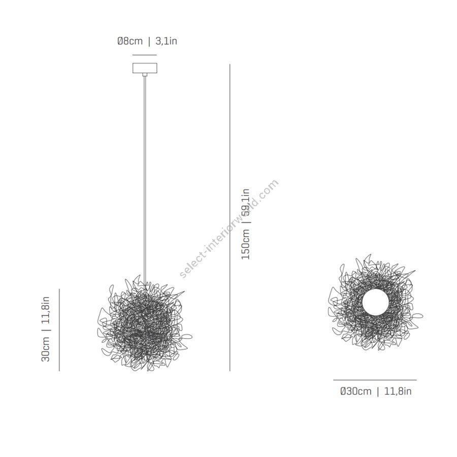 The PILI mini pendant lamp is a single thread of painted stainless steel that intertwines creating random volumes without order, weaving a harmonious and enveloping irregularity full of charm and mystery. This skein through which light escapes is handmade in Spain. The collection is presented in 3 lamp sizes that allow you to create compositions of great visual impact.