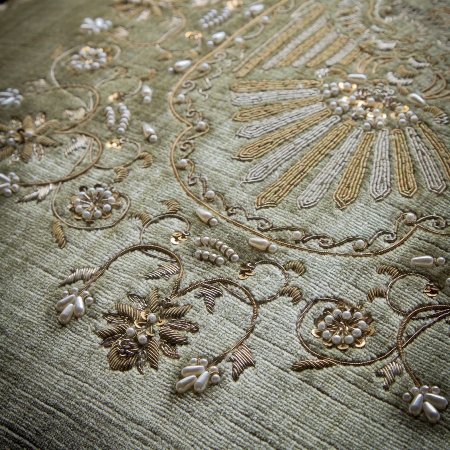 Taking inspiration from the imperial eagles, Beatrice showcases the most exquisite metal thread embroidery.