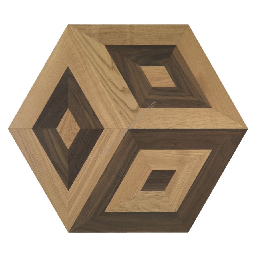 The Miami marquetry parquet becomes an element of decor. The pattern in walnut and oak wood, repeated in the surface, creates a unique and unmistakable optical illusion.