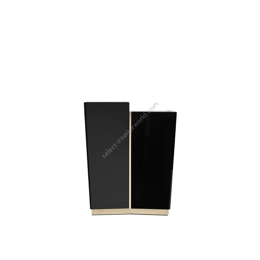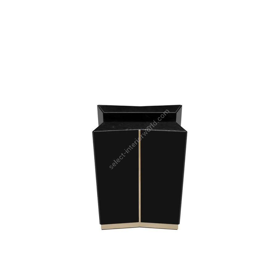 The Beyond Side Table showcases a perfect synthesis of contrasting shapes and materials, exuding elegance and discerning taste. Its symmetrical design features a geometric Nero Marquina marble top, complemented by polished brass accents and a unique black lacquer-textured finish. This modern side table is a testament to meticulous craftsmanship and attention to detail, making it a striking addition to any contemporary interior.