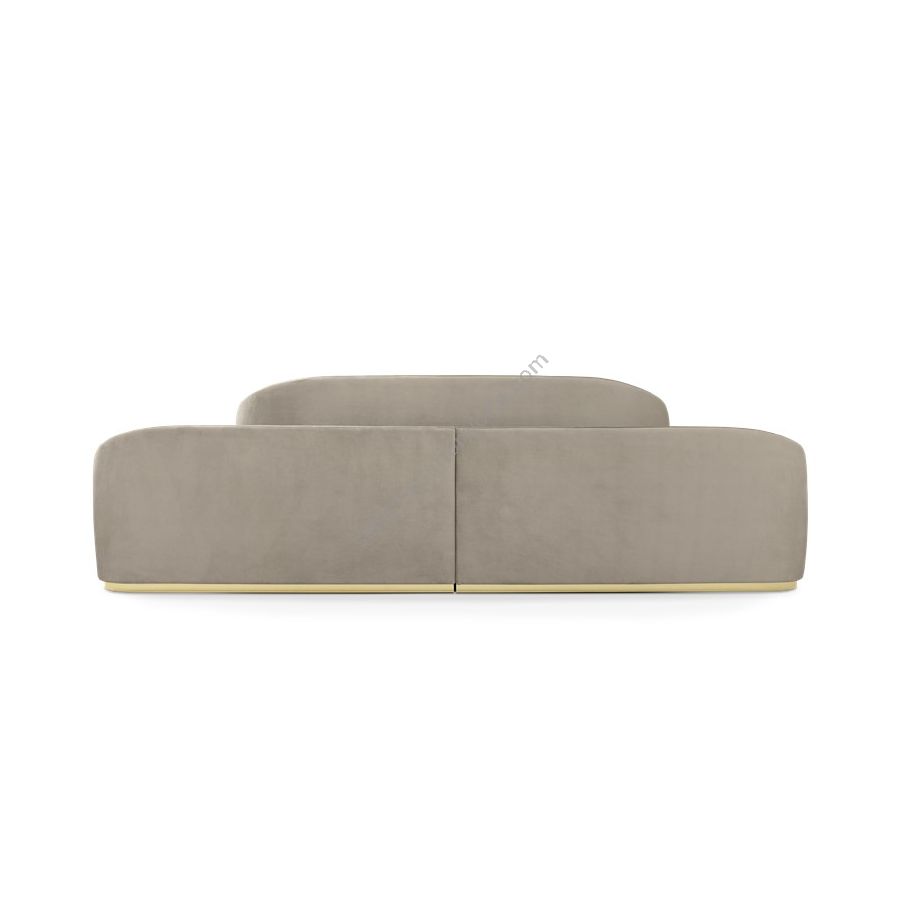 Wood structure with polished brass details, upholstered in velvet with foam inside. Side parts can be extended up to 50 cm on each side. The structure allows the placement of an electrical outlet on the sides. Elevator platform applied.