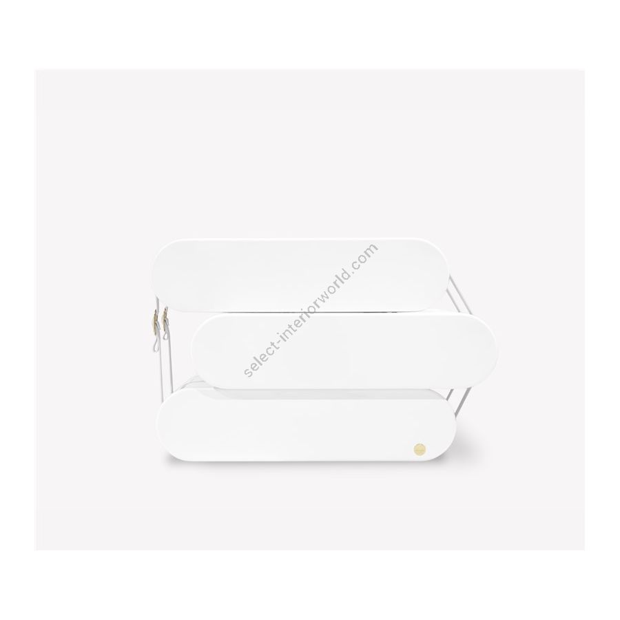 Built-in wood, lacquered in glossy white, with details in synthetic leather and gold plated finishes.