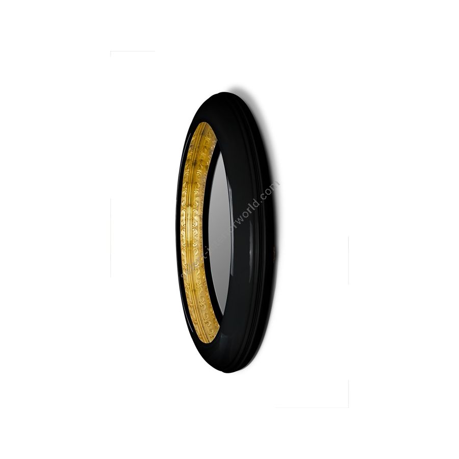 Like a jewel that reflects eternal beauty when it's admired, the Ring Round Mirror is the soul, which aspires to the sublime. The richness of this large wall mirror lies within its reflection. Ring Round Mirror evokes an antique unreachable treasure that could only be found in the most remote place on Earth. The Ring Round contains a mirror frame in black lacquered high gloss, with a minimalist line on the outside and another carved handmade on the inside. A precious piece of art with its interior made of refined carved wood, as exquisite as its owner. Ideal for a unique and exclusive home, Ring Round Wall Mirror will reflect elegance once it’s in your living room or your bedroom.