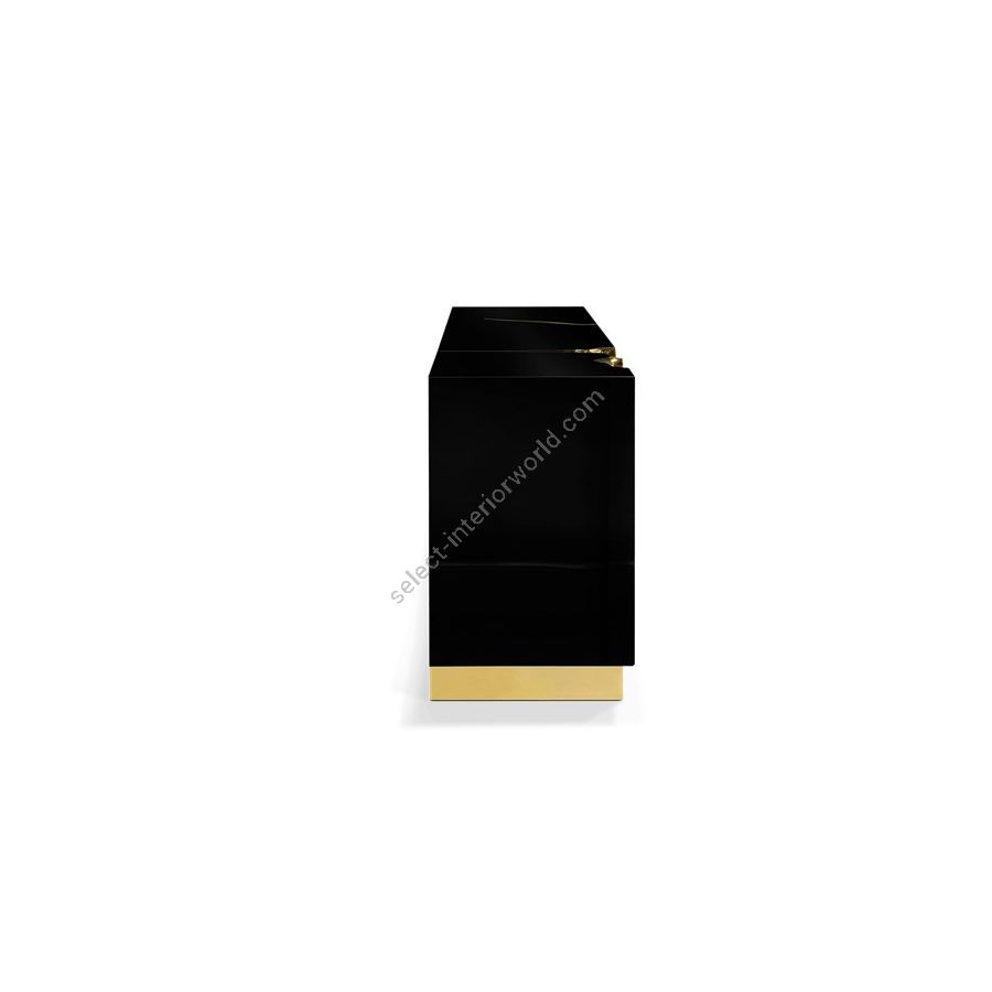 Its organic features are achieved through the manual fitting of polished brass, and a glossy black lacquer finish that bursts from the inside to the distinct exterior façades. Different-shaped doors and drawer are embellished by hammered gold details, conveying both sophistication and elegance to bring a new contemporary verve into refined interiors.