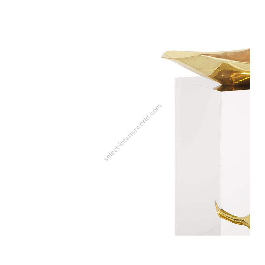 The french word is the name given to the typical karst formations produced by surface dissolution of limestone or dolomite rocks. It can also be caused by freezing and thawing in cold climates. This is how Lapiaz washbasin emerged. Imagine a stone freezed and freshly cracked to show the entire world a rich, golden interior. The polished brass details and mirrored sides attribute this luxury design artwork an artic yet comfy and warm beauty. A real statement piece for the most luxurious bathrooms.