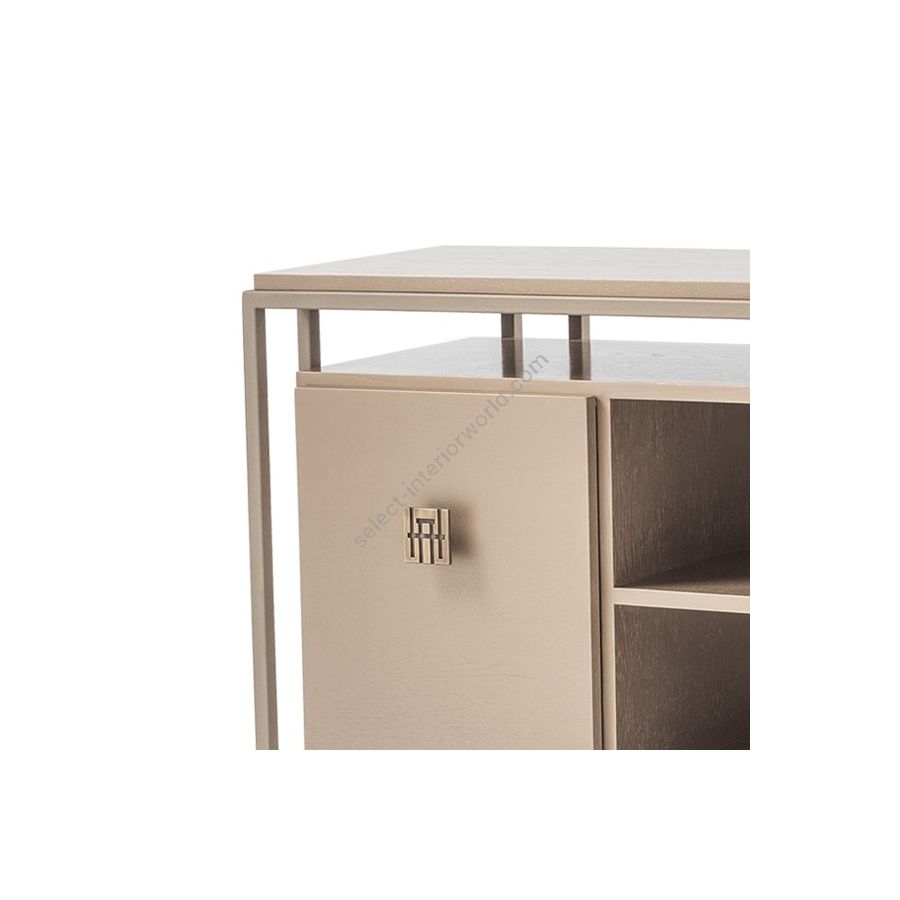 Versatile and multifunctional piece. Even though its principal and most important function is as a center piece for the entertainment, it will also work as an accent piece or low console. This piece is complemented by Bolero BR33-200 or BR33-210 to create a complete entertainment. Its metal structure can come in two finishes, bronze or silver and its doors and tops in eucalypt wood. The mixture between the eucalypt and the metal creates elegance and light look.