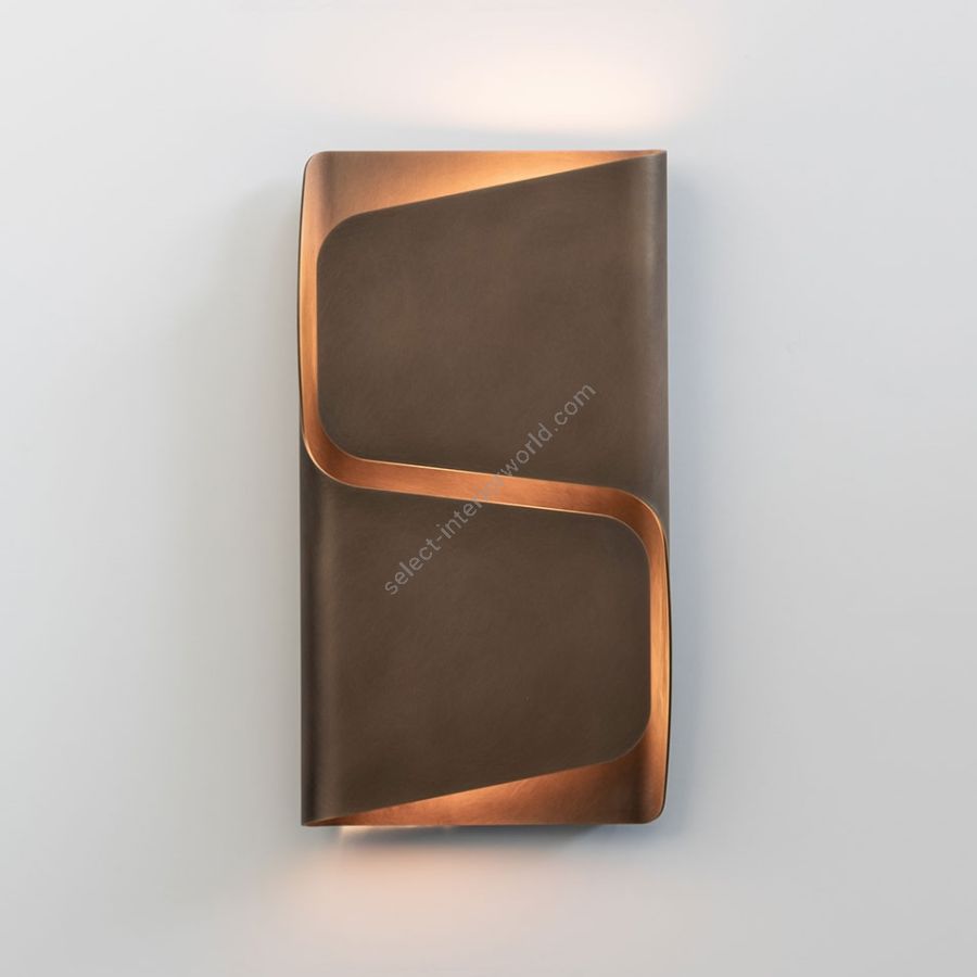 Ambient light reveals itself from behind the folds of asymmetrical, hand-finished bronze. One of a trio of sconces called The Folded Series designed by Deirdre Jordan.