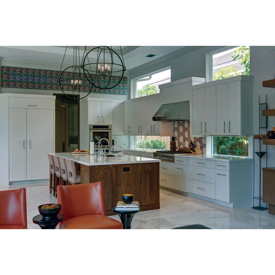 The light, airy, and see-through cage which means it can fill residential and hospitality spaces without blocking a view. Multiple sizes, heights, finishes and lamping options give this fixture universal appeal.