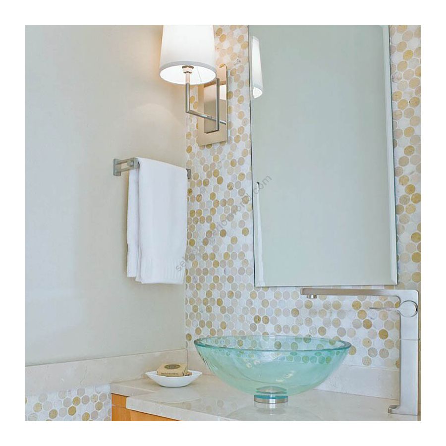 This clean-lined interior wall sconce by Barbara Barry for Boyd Lighting features a two tone back plate of polished and satin panels that is at once crisp and playful. Perfect for residential bedrooms, bathrooms, living rooms, offices and libraries, yet priced for volume use in commercial and hospitality spaces. Available in two metal combination-finish options.