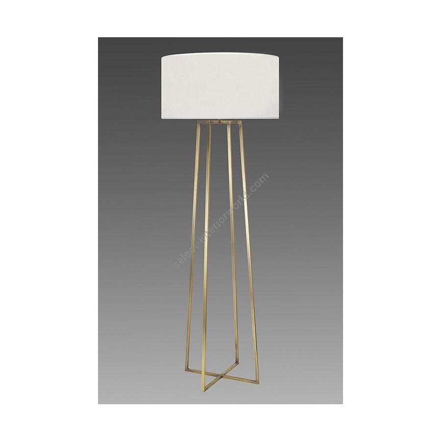 Floor lamp in brass. Made with 4 inclined square tubes, joined at their end by 2 crossed tubes. This contemporary floor lamp gives an original design to your interior. Available in black or matt gold patina. Presented lamp shade in beige striated chintz in a cylindrical upright shape (see other available shapes and colours).