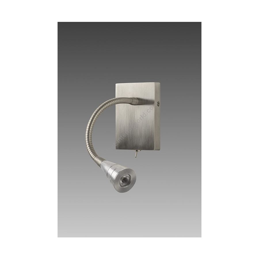 Wall light with Led light made in brass. Made with a 20cm flex on a rectangular base with switch. This reading wall light gives a sober and elegant design, and an efficient direct light. Available in black or matt gold patina, and in nickel or brushed nickel.