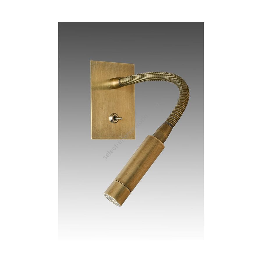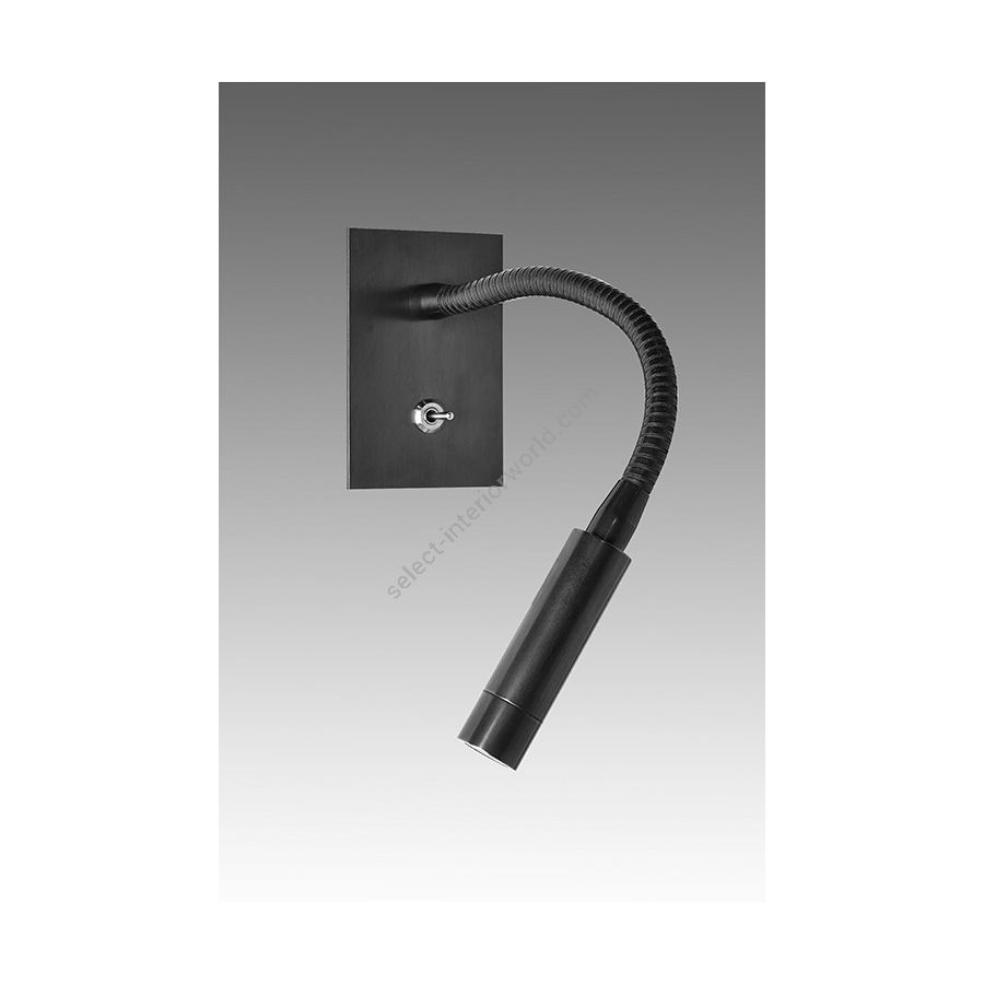 Wall light with Led light made in brass. Made with a 30cm flex on an embedded rectangular plate, with switch. This reading wall light gives a sober and elegant design, and an efficient direct light. Available in black or matt gold patina, and in nickel or brushed nickel.