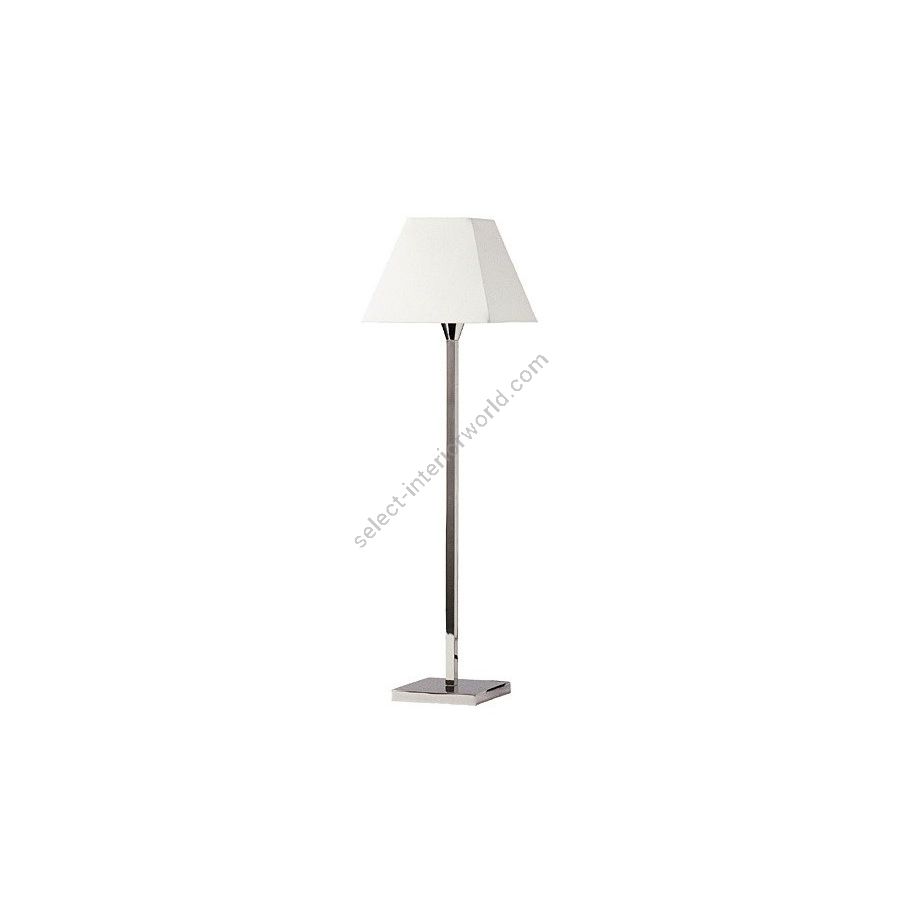 Lamp made in brass. Made with a square tube on a square base. This contemporary lamp gives a touch of discrete elegance to your interior. Available in black or matt gold patina, and in nickel or brushed nickel. Also exists in small (L122A) or in medium size (L122B). Presented lamp shade in white cotton chintz in a pyramidal tapered shape (see other available shapes and colours)