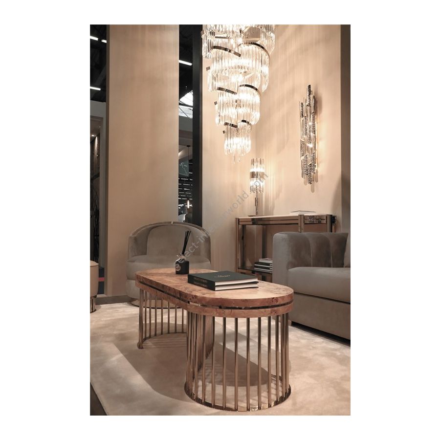 This design carries the same beautiful name and charm that is capable to transform any living space into an outstanding one. The Grace center table was designed to be an accent furniture décor to provide a luxurious statement to the interior. The classy decorative piece incorporates bespoke brass elements and a tailor-made poplar root veneer wood top. A sophisticated colour combination is smooth yet delicate – it manifests an effortless elegance that is alluring to decorate with and complete a total home look with balance and harmony.